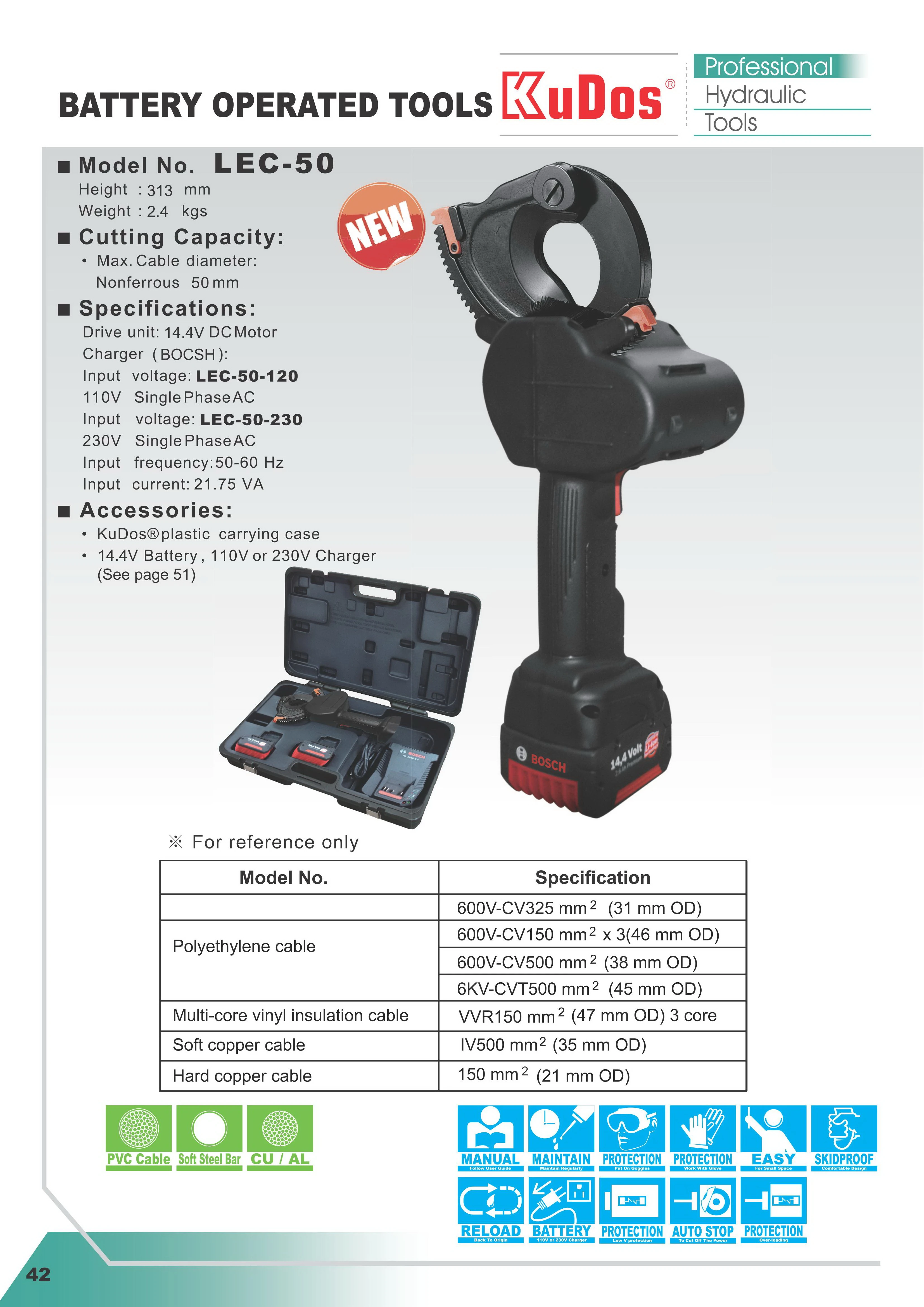 最大切斷電纜直徑:不含鋼線50mm